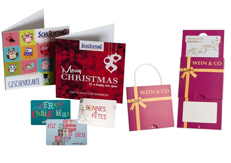 Denken Sie jetzt schon an Ihr Weihnachtsgeschäft: Mit schönen Gutscheinkarten und passenden Verpackungen machen Sie Ihre Produkte zum gerne gekauften Geschenk.