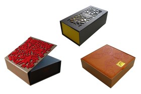 Edle Stoffe, filigran verzierte Oberflächen, spannendes Innenleben: Ausgefallene Verpackungen geben Ihren Karten und Kundengeschenken einen luxuriösen Auftritt.