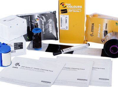 We only use original Zebra TrueColours®-colour ribbons, overlays and laminates, EDIsecure-colour ribbons and foil as well as high-class TRW-foils for re-writable plastic cards - with all this, you get optimated print results and colour brillance and guarantee the longevity of cards and printer. According to this, always use the suitable cleaning materials! We hold the materials for your daily use in readiness and deliver just-in-time.